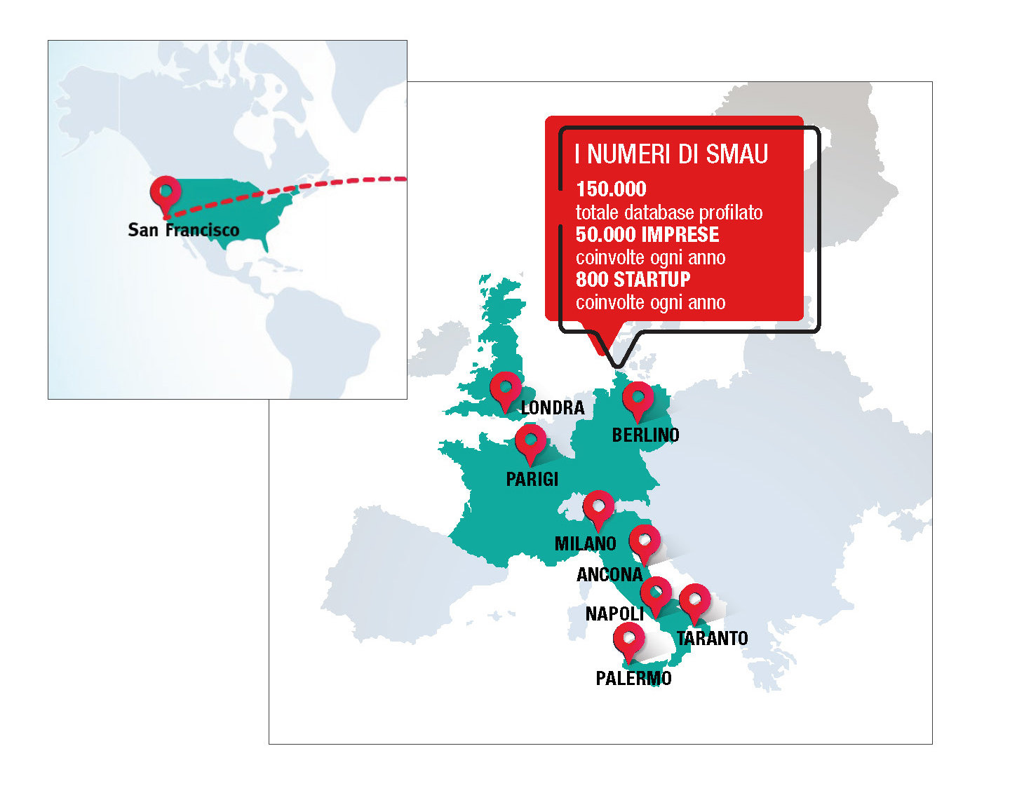 SMAU si articola in un Roadshow annuale di appuntamenti territoriali, un evento internazionale a Milano, tappe all’estero a Parigi, Londra, Berlino e San Francisco. Con oltre 50.000 imprese provenienti da tutti i settori produttivi coinvolte ogni anno, SMAU è la piattaforma di riferimento per dialogare direttamente con i protagonisti dell’ecosistema dell’innovazione italiano e internazionale.