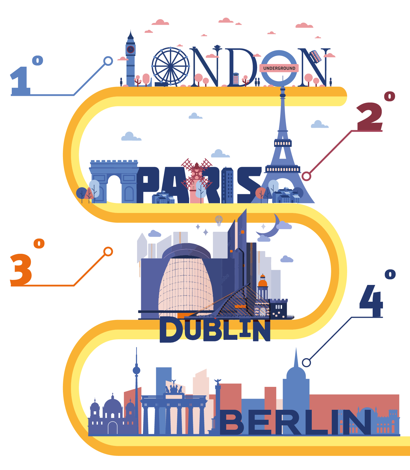 Al primo posto della classifica c'è Londra, seguita da Parigi e Dublino. Al quarto posto si trova poi Berlino, seguita da Amsterdam, Madrid, Barcellona, Monaco, Stoccolma e Bucharest (Milano è al 18mo posto nella classifica).