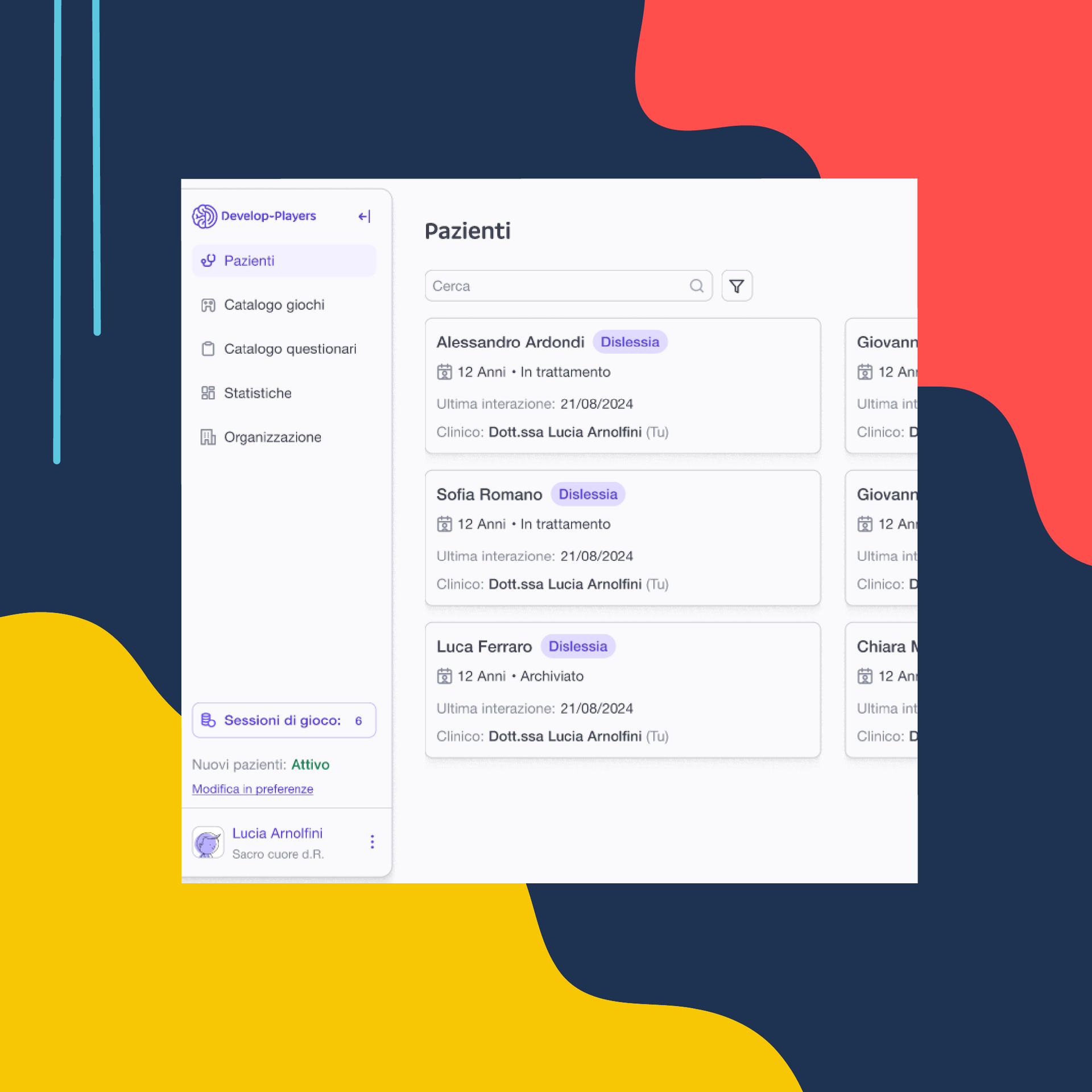 Develop-Players è una startup innovativa e spin-off dell’Università di Bologna che crea videogiochi scientificamente validati per lo screening, la diagnosi e il potenziamento cognitivo di bambini e ragazzi con DSA e ADHD. I suoi servizi sono rivolti a clinici (psicologi, neuropsicologi, logopedisti, pedagogisti), scuole e famiglie con bambini e ragazzi dai 4 ai 18 anni con bisogni educativi speciali, DSA e ADHD, che cercano strumenti rapidi, validati e inclusivi per valutazione e potenziamento cognitivo.