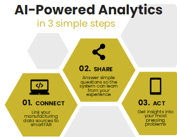 smartFAB è una piattaforma di AI-powered analytics (analisi basata sull'Intelligenza Artificiale) realizzata per aumentare la competitività delle aziende manifatturiere italiane attraverso una riduzione degli scarti di produzione e un incremento della produttività delle fabbriche. Utilizza il Machine Learning automatizzato e altre forme di intelligenza artificiale per fornire in modo rapido ed efficiente approfondimenti interfunzionali fruibili e spiegabili, in modo che tecnici, ingegneri e manager con differenti skills, presso le aziende manifatturiere di ogni dimensione, possano determinare i problemi più urgenti, stabilire le cause, quantificare i rischi, prevedere i risultati, mettere in piedi azioni correttive e misurare i risultati in tempo reale con un clic del mouse, a costo zero per ogni analisi aggiuntiva.