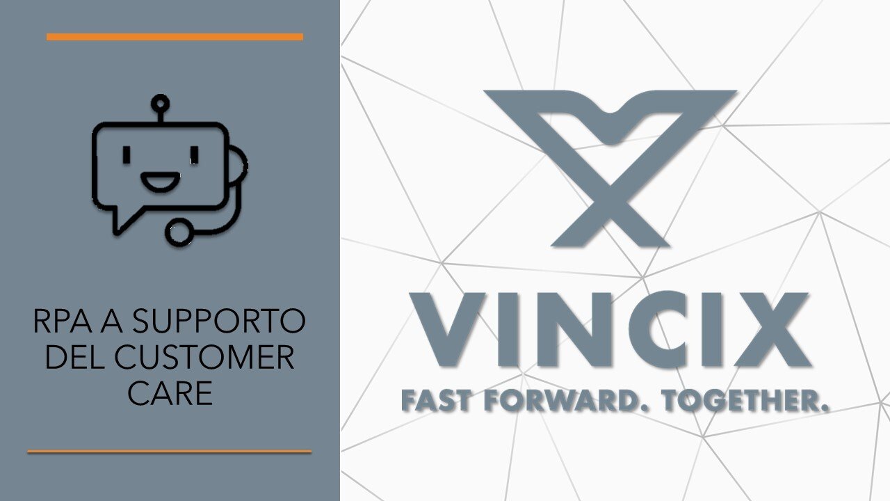 Vincix Group, gruppo anglo-italiano fondato nel 2018, realizza soluzioni per il business basate sulla Robotic Process Automation e sull’Intelligenza Artificiale, che non richiedono interventi sui sistemi informativi esistenti. Ciò permette ai nostri clienti di accelerare ed automatizzare i processi con benefici economici ed operativi ottenuti in tempi brevissimi e senza rischio tecnologico. Ci rivolgiamo ad aziende operanti nel settore bancario, assicurativo, energetico, sanitario, marketing e comunicazione, delle telecomunicazioni, della grande distribuzione, dei servizi B2B E B2C e delle pubbliche amministrazioni.