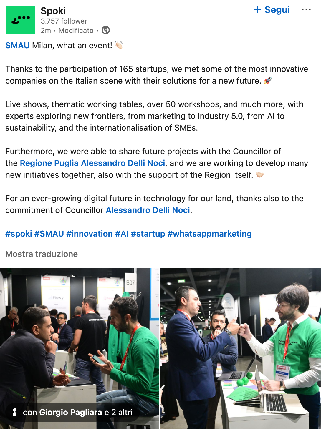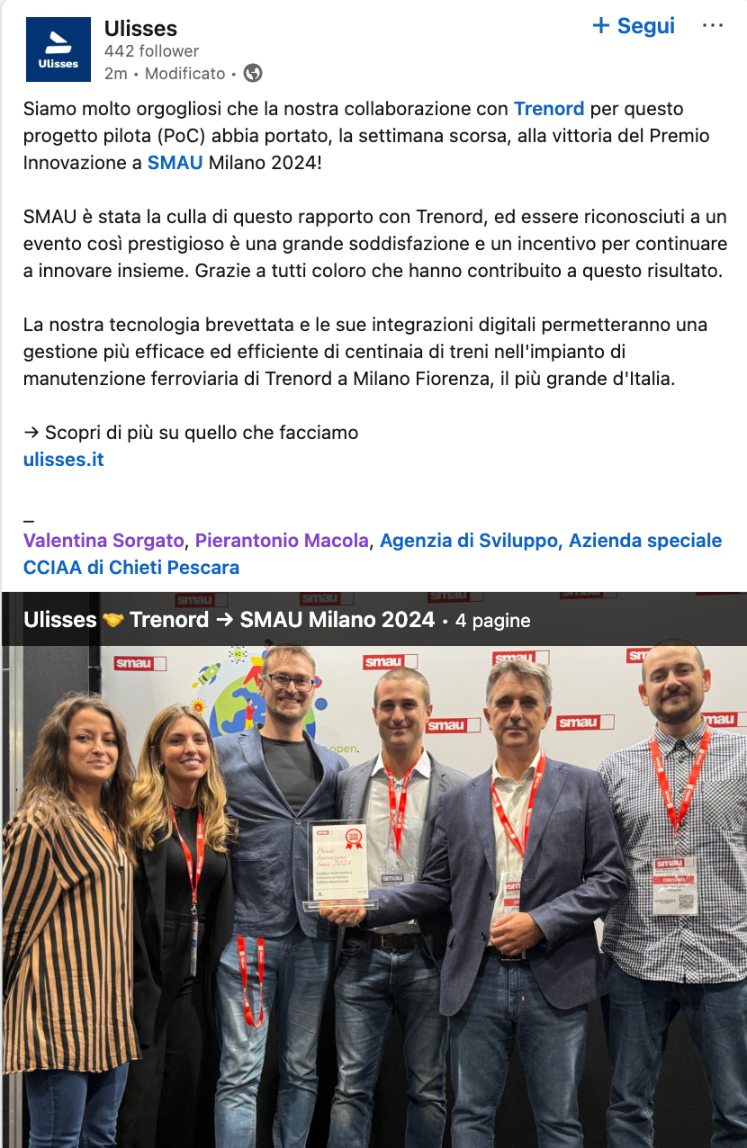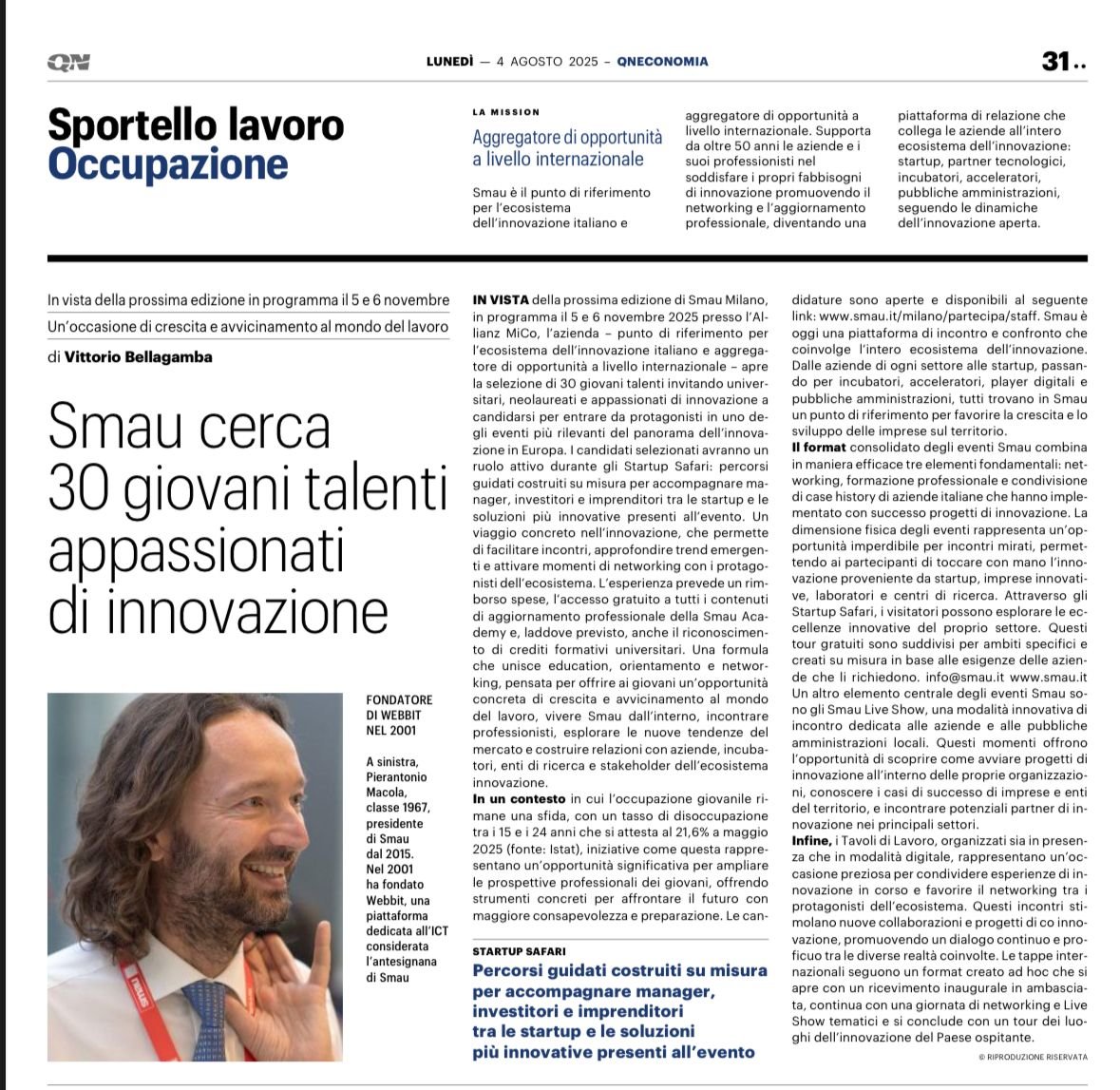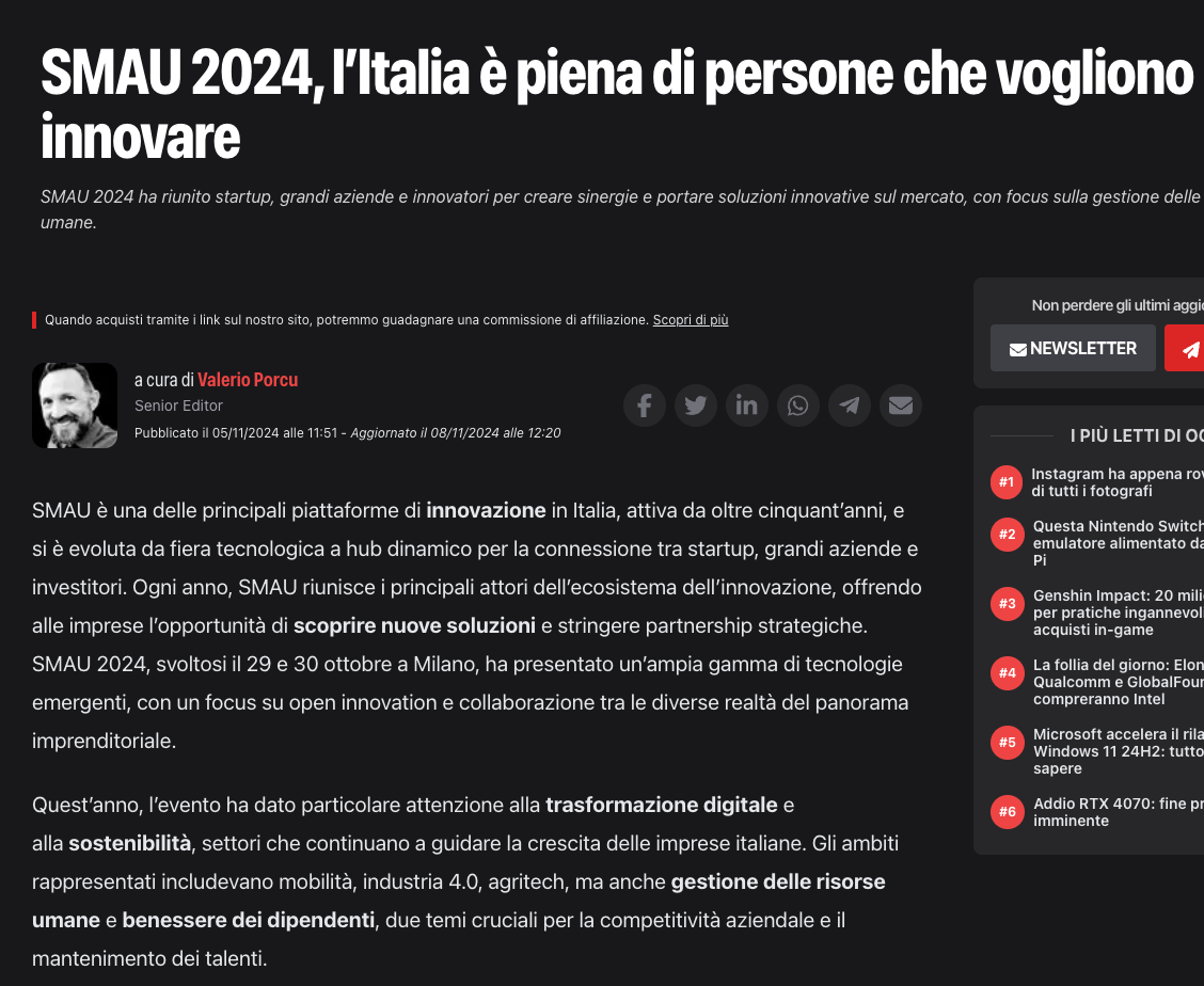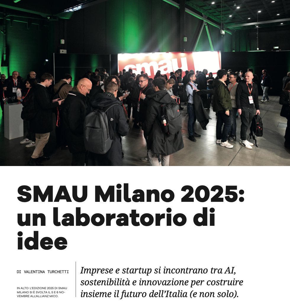La bacheca dedicata alle voci di chi vive e racconta l'ecosistema dell'innovazione. Una raccolta di articoli, post di LinkedIn e contributi dei nostri partner che parlano di noi. Racconti ed esperienze che mettono in evidenza il valore del nostro ecosistema e l'impatto delle collaborazioni nate attraverso SMAU. Dai un'occhiata e scopri cosa rende speciale il nostro network!